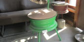 En in de garage van Stichting 2 Hands@work troffen we een bijzonder meubelstuk aan op deze koude en frisse dag. Het betrof namelijk een bijzondere kruk met een bijzondere voetensteun die gemaakt is van oude auto-onderdelen. Echt hergebruik van goederen, wat goed is voor het milieu. En de prijs is geen eens zo gek, namelijk slechts 250 Euro voor deze leuke kruk.