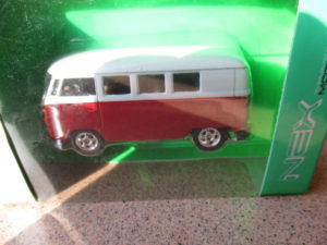 Het Volkswagen T1 busje sleutelhanger in de orginele verpakking.