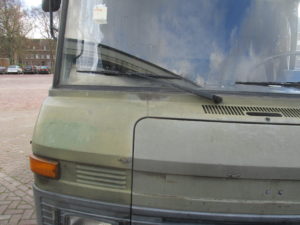 Op deze foto kan je een beetje zien waar de restauratie werkzaamheden gaan plaatsvinden. Dit is net een beetje links pal onder de voorruit. Hier zit namelijk een plekje wat gecorrodeerd is.