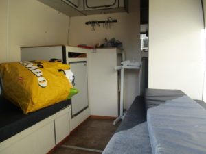 Ook is er voldoende keukengerei aanwezig in dit leuke camper-busje!