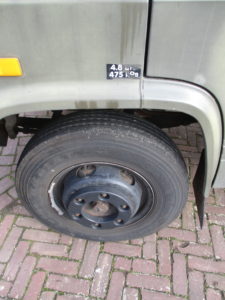 Nog een leuk shot van één van de voorwielen van deze bijzondere legerbus/camper.