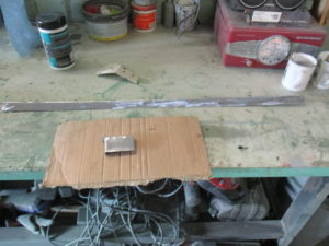 Deze foto laat twee voorbewerkte plaatwerkjes zien, die gebruikt zullen worden om deze interessante Mercedes legerbus verder te restaureren.