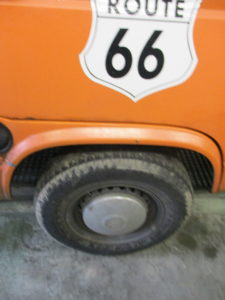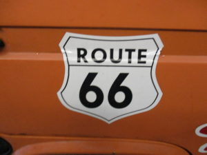 Een mooie afbeelding van “Route 66” op deze bijzondere oldtimer.